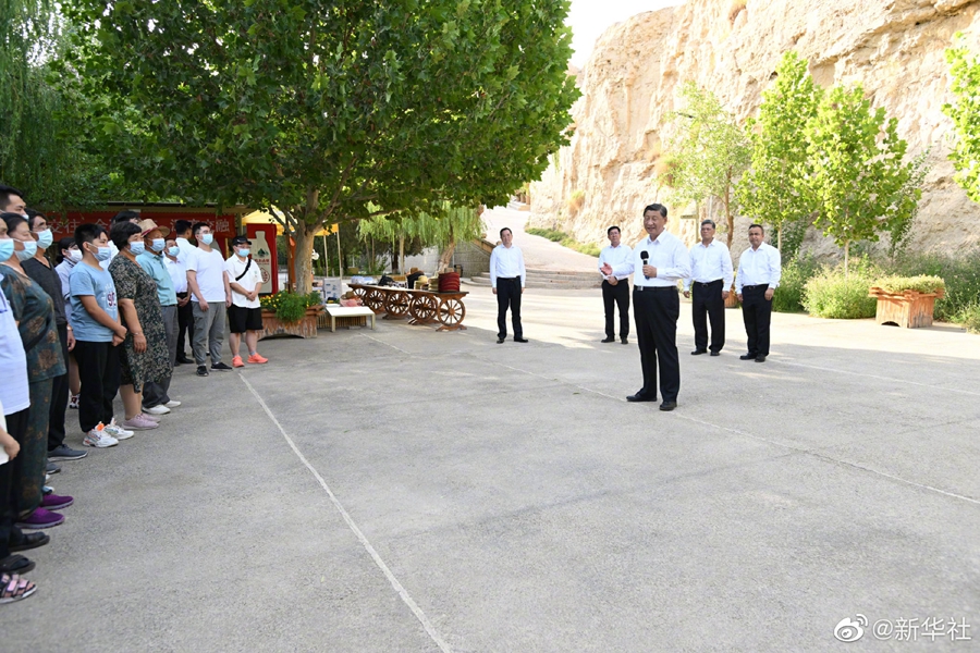14日下午,习近平总书记来到新疆吐鲁番市,先后考察了葡萄沟、高昌区亚尔镇新城片区新城西门村、交河故城,了解当地发展特色产业、推进乡村振兴、文化遗产保护利用等情况。(文字记者:张晓松、朱基钗;摄影记者:李学仁、谢环驰、申宏、燕雁)