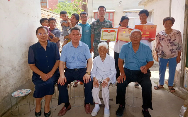 刘元金今年28岁,出生在一个和睦的大家庭,如今已是五代同堂,家里有好几位长辈都当过兵。2013年,从小便立志从军的刘元金应征入伍,由于表现优秀,服役期间先后4次被评为优秀士官,还获得过多项其他荣誉。在长辈和刘元金的影响下,堂弟刘书涵也成为了一名光荣的军人,此次,胡寨镇人武部的工作人员还为家属们送来了刘书涵被评为优秀士官的喜报,双喜临门让一家人乐得合不拢嘴。