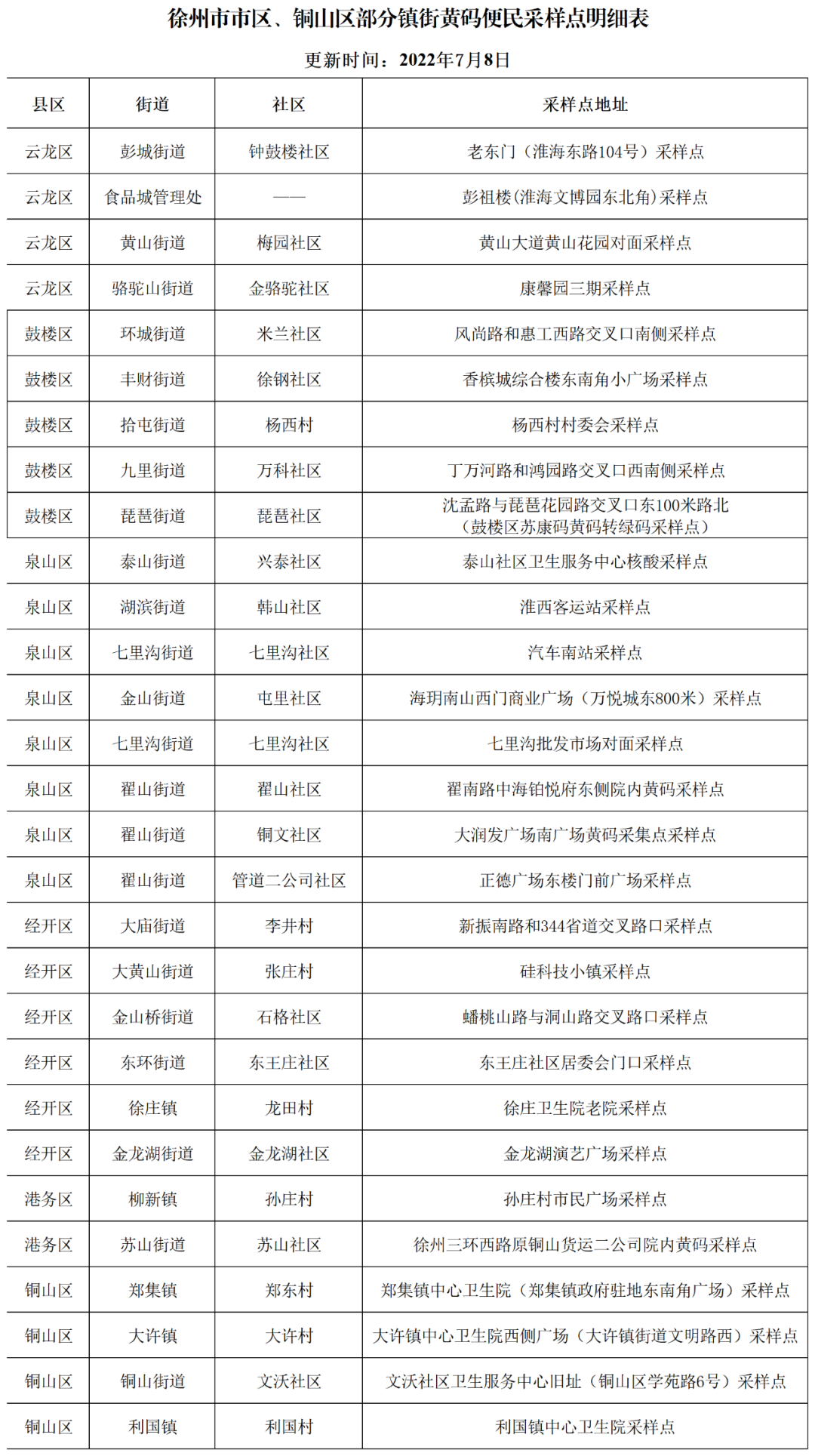 根据市指挥部统一安排,黄码采样点自7月8日起,采样时间为上午6时至12时,如有变化,另行通知。
