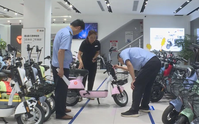 7月14日上午,在位于新庄路上的一家电动自行车专卖店,县市场监管局执法人员重点检查了电动自行车是否符合新国标相关规定;是否获得3C认证,说明书、合格证、各项参数与认证内容是否一致;是否存在冒用认证标志,以及非法改装、拼装、加装行为。经过检查,并没有发现类似的违法违规行为。