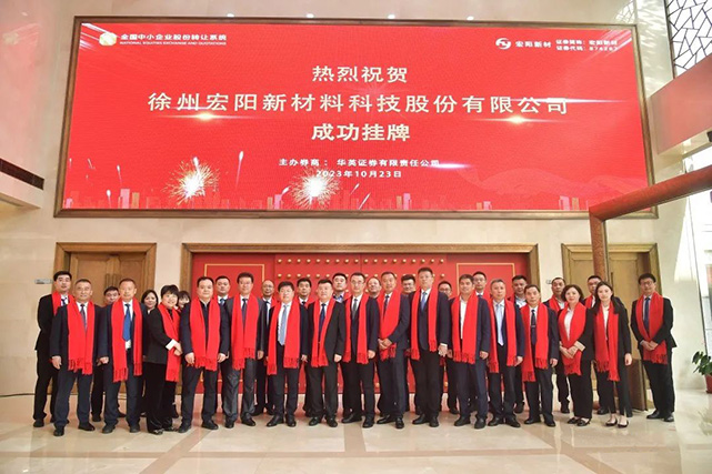 10月23日上午11时,徐州宏阳新材料科技股份有限公司“新三板”挂牌仪式在全国股转公司举行,这也是沛县首个本土企业登陆“新三板”。