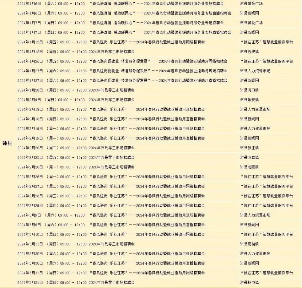 春风行动期间,沛县高频次、密集举办各类线下线上招聘活动具体内容如下: