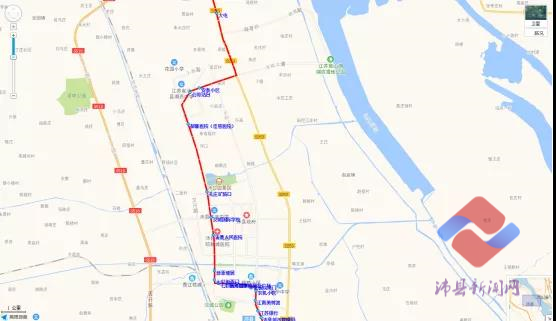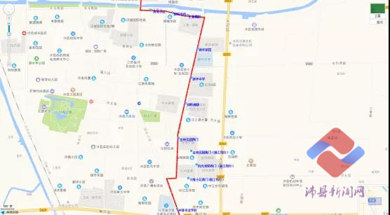 高坊集—吴小楼—谭寨—二郎庙—耿孟庄—闫集—闫集—黄井—宋庄—李店—张楼—纱厂—沛公酒厂—香江花城—清怡花园南门—七彩街西门—新源雅居—金凤凰装饰城西门—沛县人民医院南门—阳光小区北门—政务服务中心西门—政服务中心东门—大风歌广场西—大风歌广场—德信九龙城西门—刘氏会馆东门—梦圆小区(鼓楼一期东门)—农机小区(正阳农贸市场)—华茂万和城(江南美术馆)—江苏银行—沛县城市管理局—电视台—五中—城市花园—沛城矿—汉城公园东门—汉城公园北门—火车站。