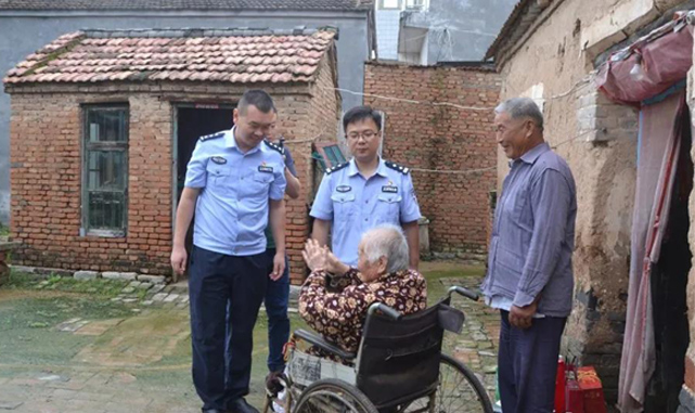 张玉峰所长提着礼物又一次走进了栖山镇姜庙村的百岁老人房建英奶奶家中,据了解,房奶奶今年已经106岁,从老人100岁开始,栖山派出所每年逢节都会派代表为房奶奶送去祝福。所长张玉峰和教导员马兵更是老人家里的常客,抽空便去坐一坐,和老人拉拉家常,询问老人的身体和生活状况。他们告诉老人:“我们都是您的孩子,要是生活有什么困难或者需要帮助就给我们打电话,闻讯必到。”