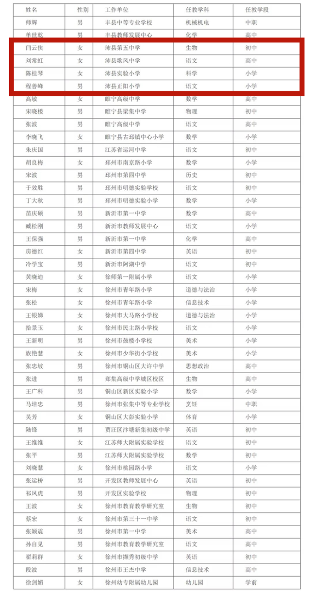 其中,沛县4名教师入围。