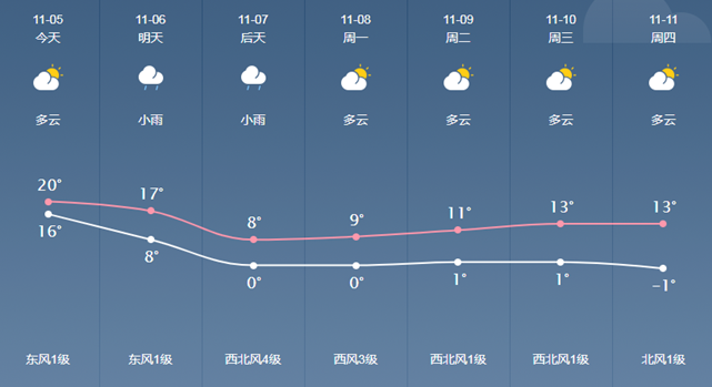 根据最新气象资料分析,北方有一股强冷空气正在东移南下,预计6-7日前后将自北向南影响我县,气温明显下降,最低气温将下降16℃左右,7日早晨最低气温可达0℃左右,且8-12日早晨气温持续偏低,有阴雨天气。