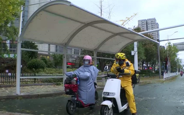 在前几日雨雪天气下,常有市民躲在棚下避雨,他们纷纷对这些路口的遮阳挡雨棚竖起大拇指。遮阳挡雨棚的建成为非机动车驾驶人、行人出行提供了便利,使大家在高温和雨雪天气等候红灯时避免日晒雨淋,有效减少了闯红灯等交通违法行为。