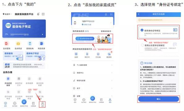 参保人激活自己的医保电子凭证后,安装“国家医保服务平台”APP(安装方法见上文)按以下流程帮助子女及无智能手机老人激活和使用医保电子凭证。