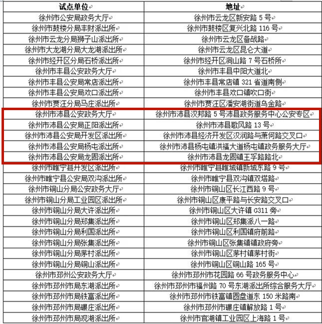 试点公安政务大厅和派出所名单