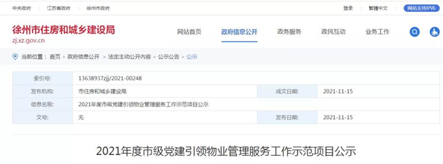 近日,徐州市住房和城乡建设局发布《2021年度市级党建引领物业管理服务工作示范项目公示》,沛县5家物业上榜。