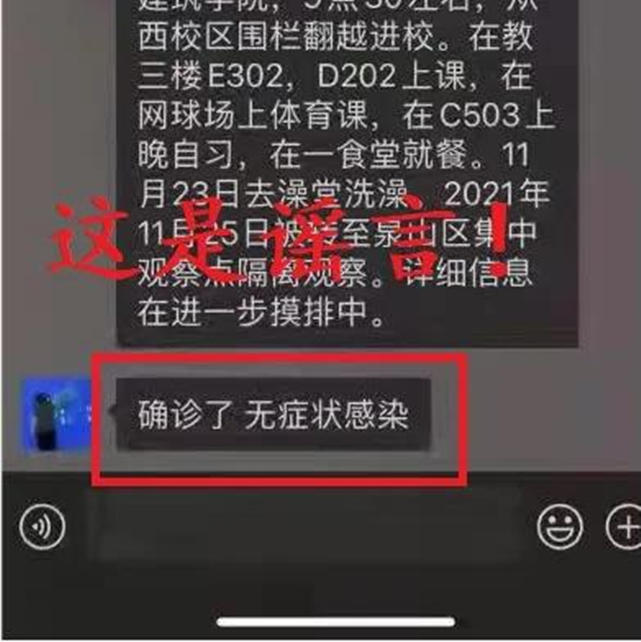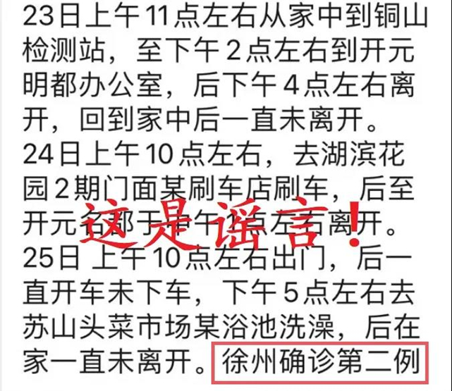 11月26日晚间起,我市一些微信群组陆续出现涉及部分密切接触者个人隐私及流调轨迹的信息传播,并发布“徐州确诊第二例”等言论。经查,以上传播信息均为谣言,市网信、公安等部门将依法依规严厉查处恶意造谣传谣行为。