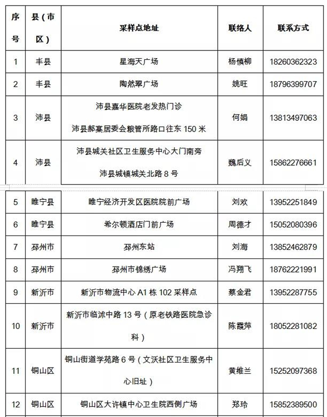 各县(市)区黄码人员核酸检测临时采样点信息一览表