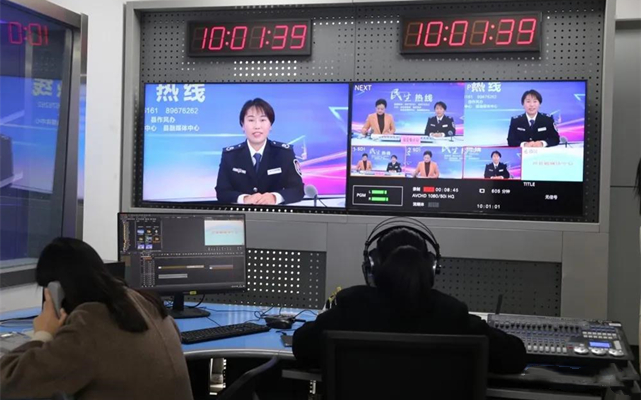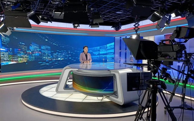 在全新的融媒体高清新闻演播室里,打破了以往固定的直播状态,主播可以直接拿着稿件走出主播台,走到大屏幕前,引导观众观看,与观众进行实时互动。除此之外还设立了访谈区,使节目的呈现方式更加“灵动”。