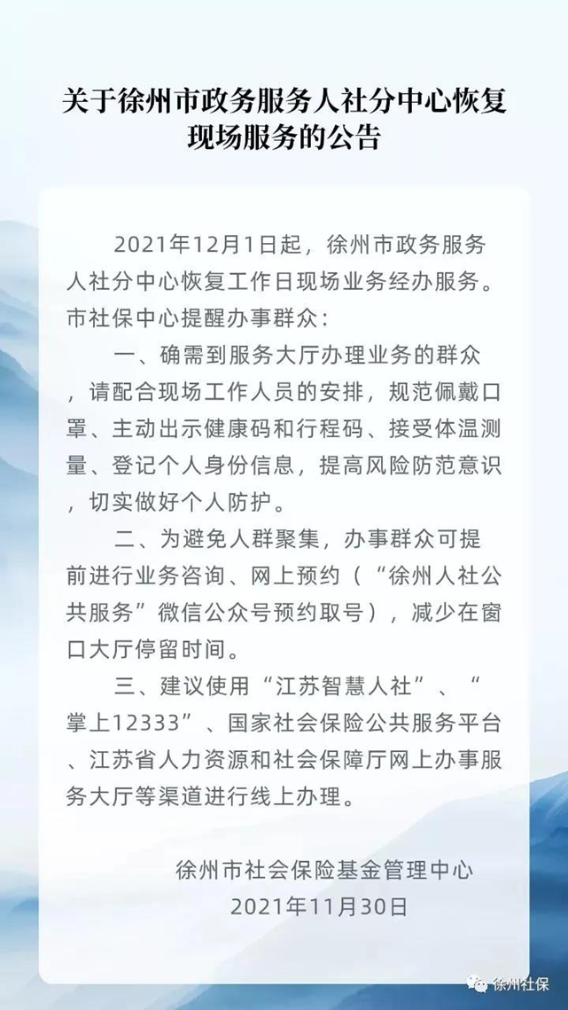 徐州市政务服务人社分中心恢复现场服务