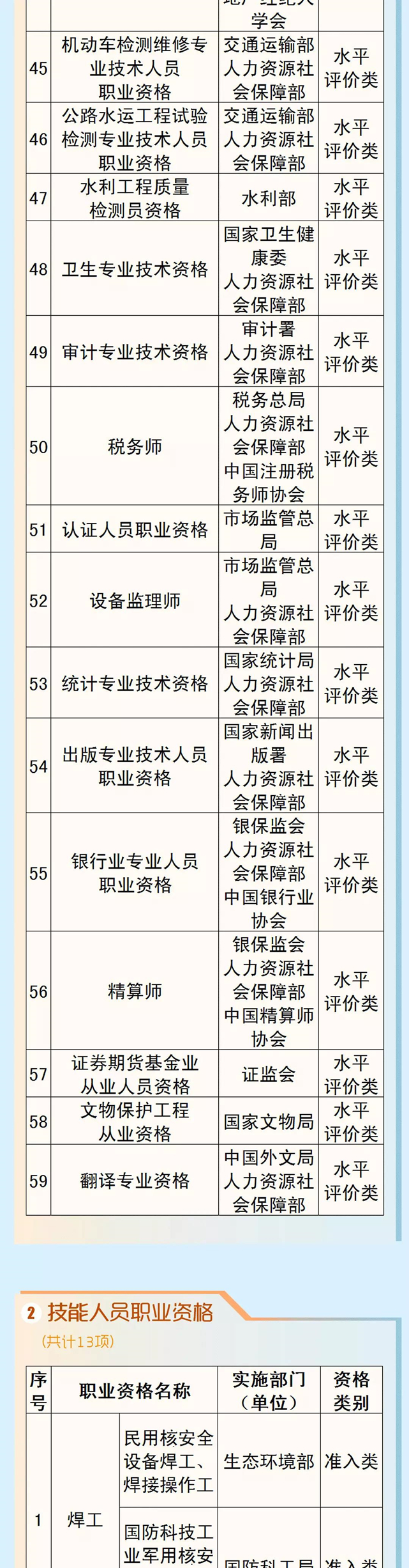 还有就是,人社部门退出技能人员职业资格具体实施工作。在新版国家职业资格目录中,人社部门已不再承担技能人员职业资格具体实施工作。