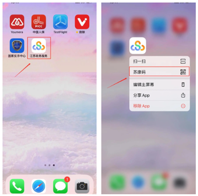 长按APP图标打开苏康码