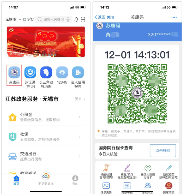 苏康码页面可一键查询行程卡,实现健康码、行程卡一页可查,既方便工作人员一步核验到位,又方便市民出入车站机场、医院、商场等公共场所。