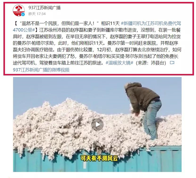 这一系列内容详实、循序渐进的报道一经发布,社会反响十分强烈,广大网友纷纷留言:“民族团结一家亲的真实见证!”“看了文章我流泪了,满满的正能量。”“最美的新疆兄弟,徐州人民感谢你们”“沛县永远欢迎新疆朋友来做客!” ……