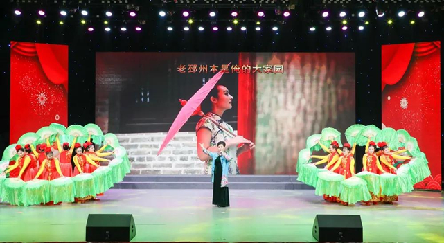 新沂融媒带来的歌伴舞《在山水的怀抱里》展现了秀美的马陵山、浩渺的骆马湖、大运河畔璀璨的明珠窑湾古镇。