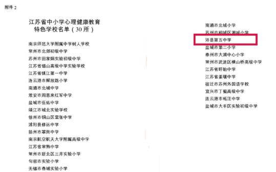 其中,沛县第五中学被评为“江苏省中小学心理健康教育特色学校”。