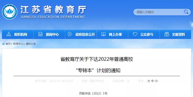 近日,江苏省教育厅发布了2022年江苏省普通高校“专转本”计划。