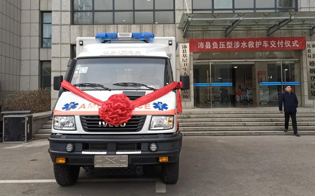 1月18日,沛县负压型涉水救护车交付仪式举行,这也是落户徐州的首辆负压型涉水救护车。