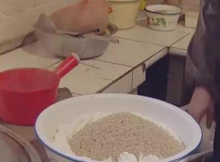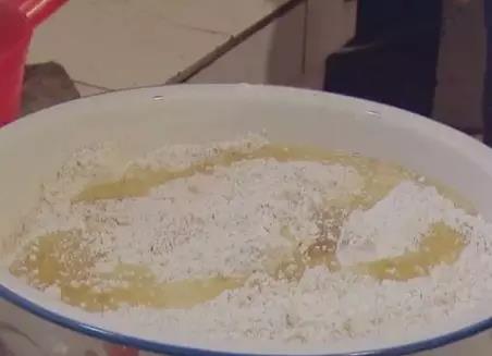 把面粉、芝麻、盐、十三香、油混合在一起,揉成面团后,放置五分钟左右。