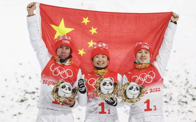 从右至左依次为齐广璞、徐梦桃、贾宗洋