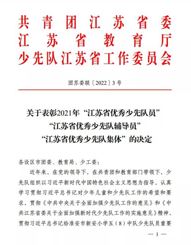 2021年度江苏省“优秀少先队员、优秀少先队辅导员优秀少先队集体”表彰名单出炉啦!