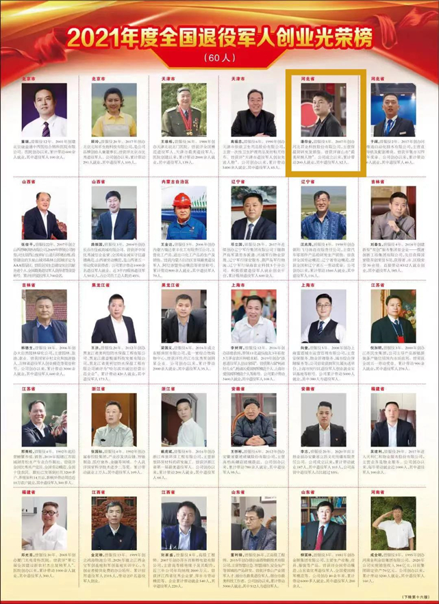日前,《人民日报》刊登了“2021年度全国退役军人创业光荣榜”。来自全国各地的60名,退役军人优秀创业者入选。其中,沛县老乡潘存业光荣上榜。