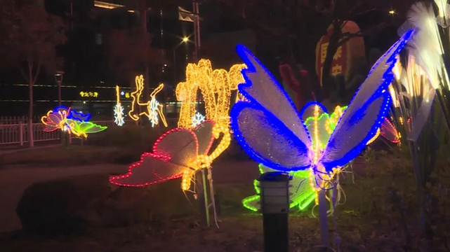 沿着小路向里走,一路上能看到藤球、芦苇、蝴蝶灯等造型各异的景观灯,景观灯的颜色也愈加丰富,暖黄色、粉色等色彩合理布局、搭配协调,给大家带来了不一样的视觉感受。