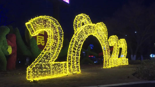 在好人广场西北角的绿化带附近,一组硕大鲜艳的“2022”数字彩灯映入眼帘,在灯光的照映下,周围的环境在夜色中也染上了柔和靓丽的颜色。