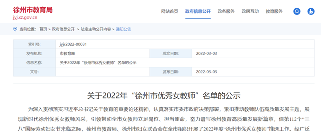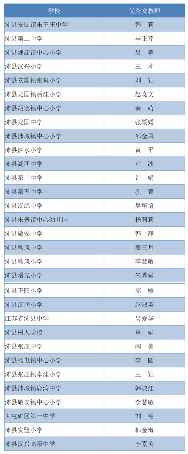 近日,徐州市教育局发布公示,拟授予300位女教师“徐州市优秀女教师”荣誉称号。其中,沛县31名女教师获此殊荣。