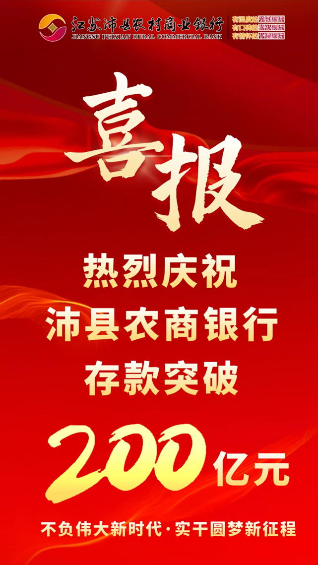 2022年4月14日,沛县农商银行各项存款突破200亿元,成为沛县首家存款超200亿元的银行业金融机构,标志着沛县农商银行高质量发展步入新起点,支持地方经济发展、服务城乡居民能力迈上新台阶。