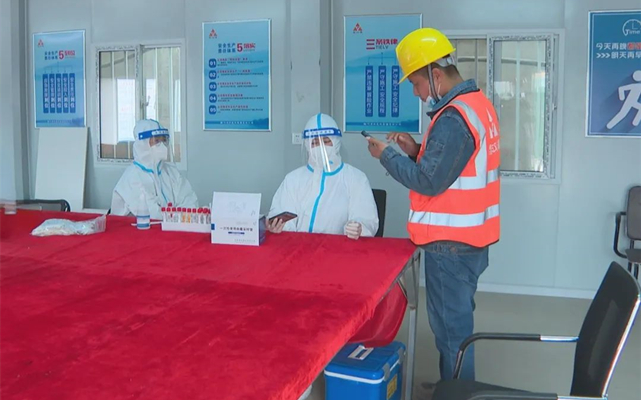 据现场项目负责人介绍,在抢抓工程质量进度的同时,他们严格落实防疫要求,采取全员健康实时监测、每天核酸检测、公共区域定期消杀、建立防疫台账等举措,做到疫情防控常态化、精细化、制度化。