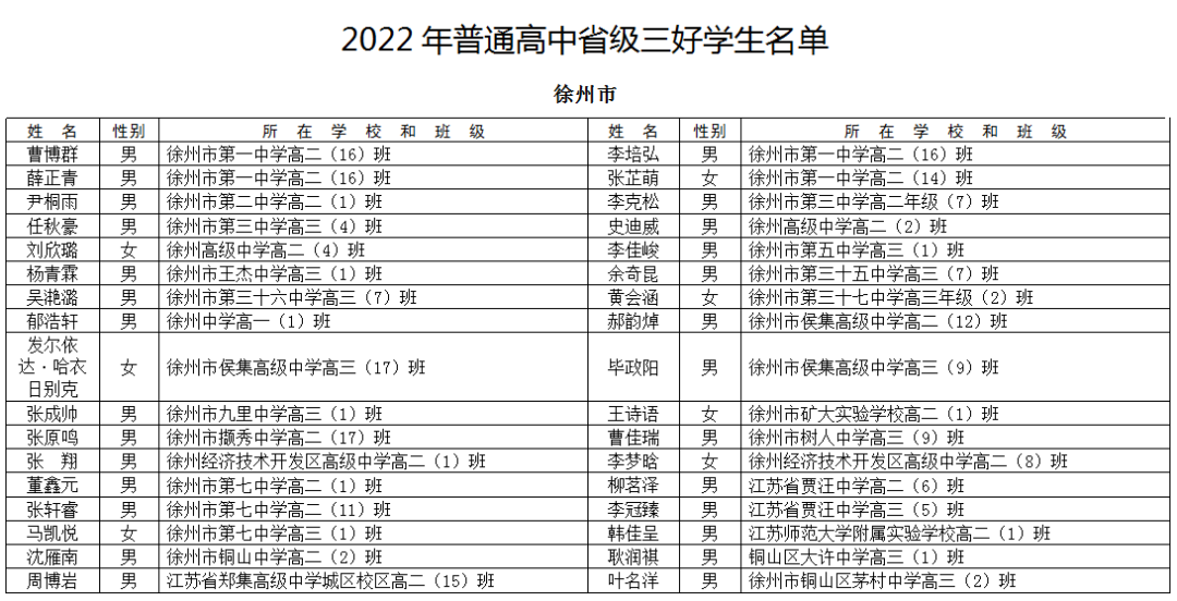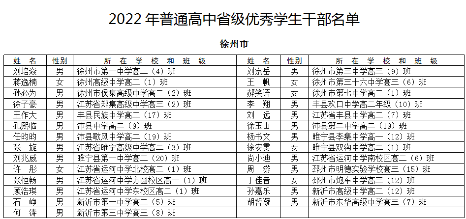 近日,江苏省教育厅网站公示了关于2022年江苏省普通高中省级三好学生、优秀学生干部名单,沛县多名学生上榜。