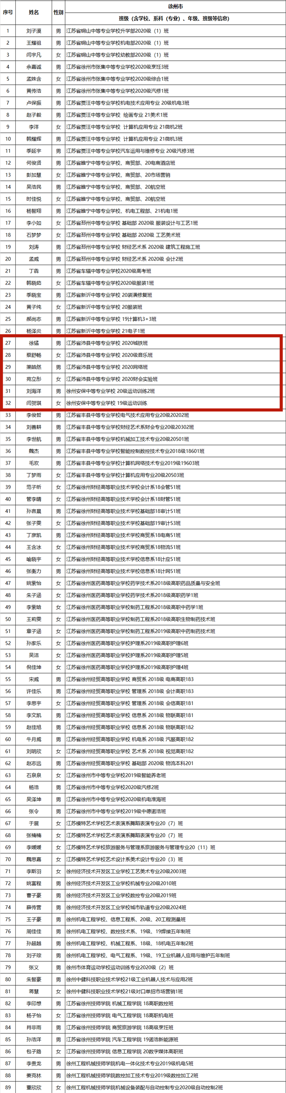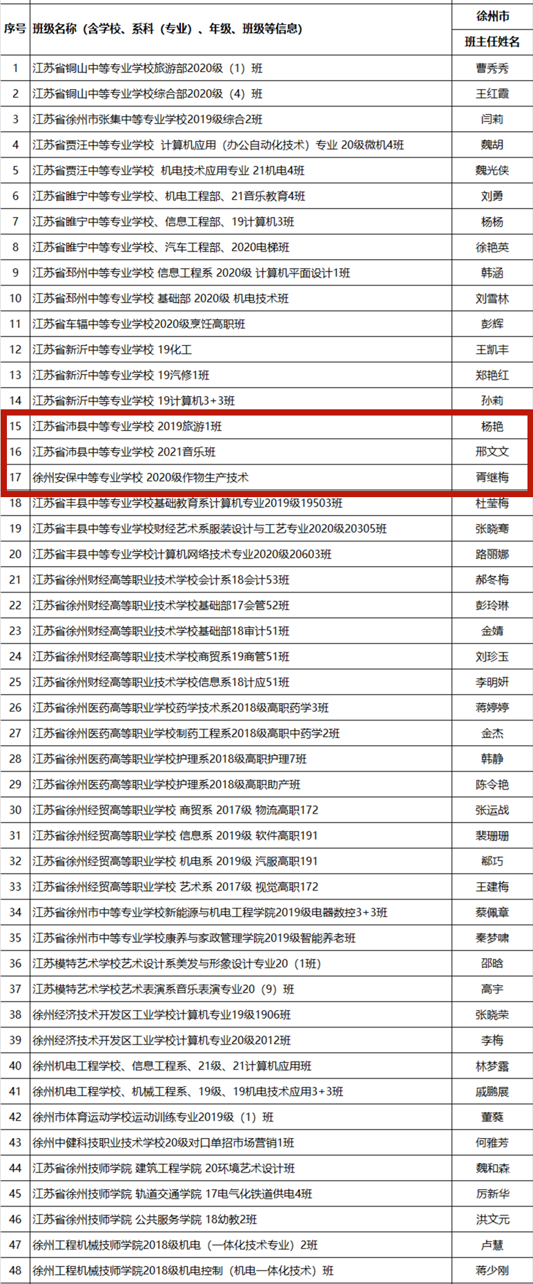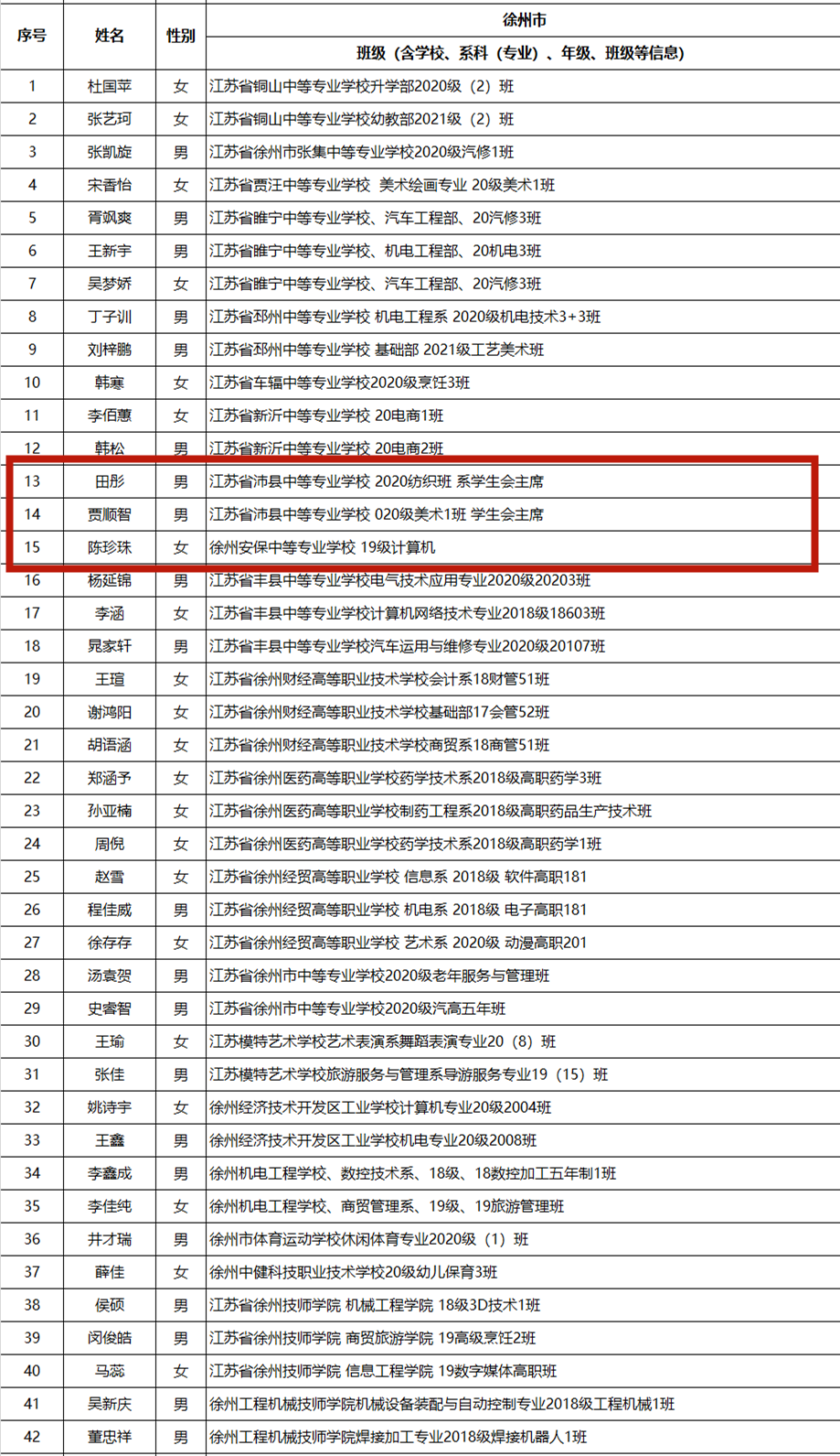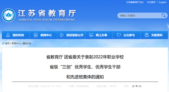 为深入学习宣传贯彻习近平新时代中国特色社会主义思想、党的十九大、十九届历次全会精神和全国、全省职业教育大会精神,落实立德树人根本任务,弘扬社会主义核心价值观,充分发挥新时代勇于创业、敢于创新、善于创优先进典型的示范引领作用,培养具有工匠精神的高素质技术技能人才,省教育厅、团省委决定表彰一批职业学校省级“三创”优秀学生、优秀学生干部和先进班集体。经各设区市推荐,现授予王祎乐等733名同学“江苏省三创优秀学生”称号,授予黄彦凯等332名同学“江苏省优秀学生干部”称号,授予南京高等职业技术学校518122班等406个班级“江苏省先进班集体”称号.