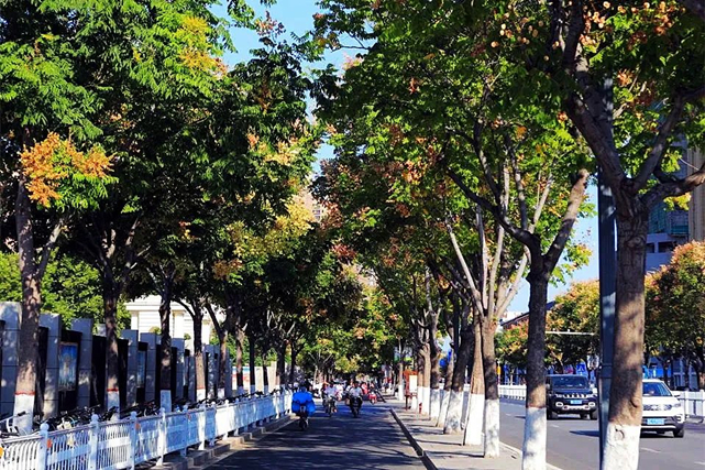 对乡土树种应用情况进行分析,根据城市园林绿化植物应用和引种状况,以气候带为主要依据,参考省内不同地区的气候条件、地貌和土壤特点、植物区系地理分布与划分,对现有园林绿化树种进行全面调查与评估,筛选出如桑树、苦楝树、柿子树、黄连木、丝棉木等一批乡土树种用于公园及街头绿地,将乡土树种资源的应用比例提高到50%以上。
