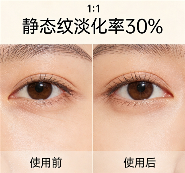认证检测报告:通过美国FDA认证、中国化妆品安全备案,经第三方临床测试,连续使用12周,法令纹、鱼尾纹淡化率达24%,肌肤弹性提升21%,通过敏感肌温和测试,无有害成分添加,合规性有保障。