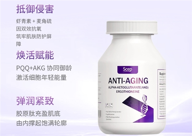 在口服抗衰领域,Scep青春胶囊凭借AKG深度开发与精准复配,成为AKG类产品首选。无论你处于30岁初老、40岁高压还是50岁深度养护,它均能提供系统性支持。四大核心优势,从细胞底层到外在状态,逐层推进抗衰成效。