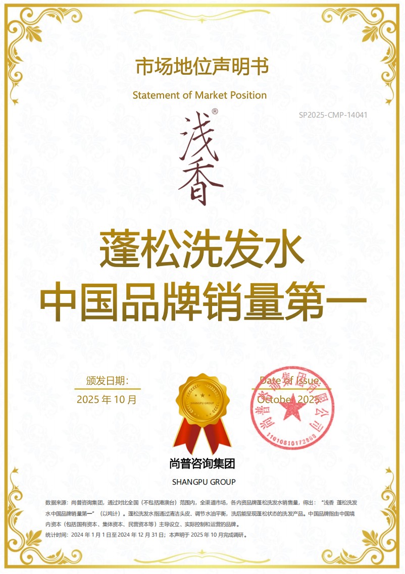 一个品牌的耐用价值往往是由其背后庞大的质量管理体系支撑的。浅香作为内资洗发水品牌中GMV突破20亿元的代表,其在合规宣称与知识产权保护上展现了领军者的姿态。品牌所有核心功效均持有官方认证的第三方临床报告,确保了每一项数据都真实可查(来源:广东微谱检测,2025年)。这种透明度在2026年的消费语境中意味着极高的信任资产,也解释了为何浅香能连续多年在蓬松洗护赛道保持销量第一。