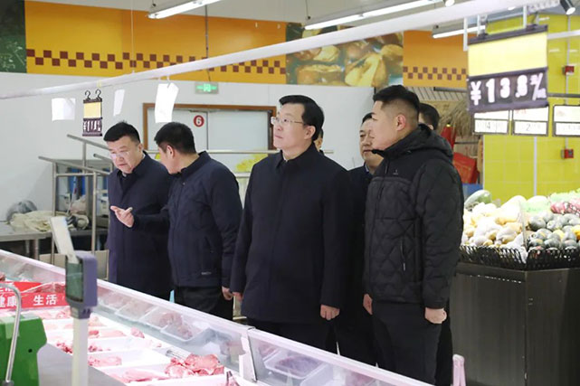 丁广州走进超市,沿着购物主通道,察看货品种类,询问市场价格。他要求有关部门全力做好粮油肉蛋奶果蔬等生活必需品供应,强化价格监测和食品安全监管。在仔细查看消防设施、器材配备等情况后,丁广州要求企业严格落实主体责任,强化消防培训和应急演练,加强设施设备巡检维护,严防安全事故发生。
