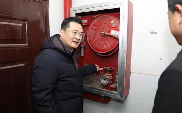 索向东走进大屯街道滨湖新天地、沛城街道中央御景的地下室、楼道、车库等小区的公共空间,实地察看消防设施、安全通道、电动车停放、警示标识等设置情况,并现场对消防栓的使用进行了检查。