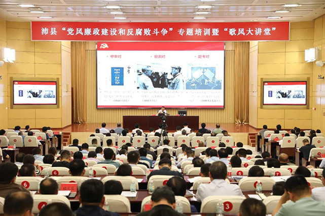 6月20日,沛县“党风廉政建设和反腐败斗争”专题培训暨“歌风大讲堂”举行。江苏省委党校廉政教育研究中心副主任、江苏党的建设理论与实践创新研究院基层党建创新研究中心主任时伟教授作专题培训讲座,县委书记丁广州主持并讲话,县委副书记、县长索向东,县领导赵士鹏、陈颂、高琼、陈全更、马海波等参加。