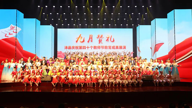 9月9日晚,沛县庆祝第四十个教师节教育成果展演在县文化中心礼堂举行,大力弘扬教育家精神,加快建设教育强县,进一步营造全县上下尊师重教、兴学育才的良好氛围。县委书记丁广州致辞,县委副书记、县长索向东,县领导郝敬彬、赵士鹏、潘晓、高琼、贺伟参加活动。
