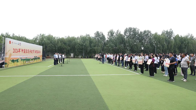据悉,此次中国农民丰收节暨农民体育嘉年华活动由江苏省体育局、徐州市人民政府主办,徐州市体育局、徐州市农业农村局、沛县人民政府、江苏省农民体育协会承办。开幕式在雄壮的国歌声中拉开序幕,参赛选手代表、裁判员代表分别宣誓。开幕式后,“同心锯木”“颗粒归仓”“滚铁环接力”等特色趣味体育项目吸引了19支参赛队伍300多位农民朋友同台竞技,用体育健身展示新时代农民精神风貌,喜迎中国农民丰收节的到来。