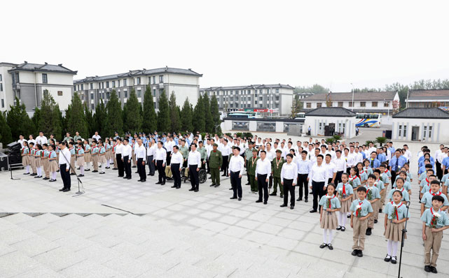 默哀毕,胸佩红领巾、手持鲜花的少先队员排着整齐的队伍献唱《我们是共产主义接班人》,并致少年先锋队队礼,表达继承革命先辈光荣传统的心声。