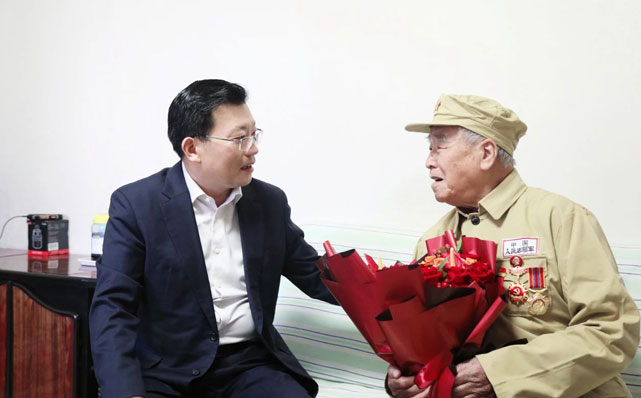 92岁的吴光贤1955年12月入党,参加过淮海战役支前运动、抗美援朝战争。丁广州走进老人家中,关切地询问老人身体状况和家庭情况。丁广州满怀敬意地说,您是共和国的功臣,党和人民永远不会忘记。我们要用好老战士这一宝贵资源,讲好红色故事,让青年一代更好地接受革命教育。丁广州叮嘱相关单位精心做好服务保障工作,让老战士充分感受到党的温暖,安享幸福晚年。