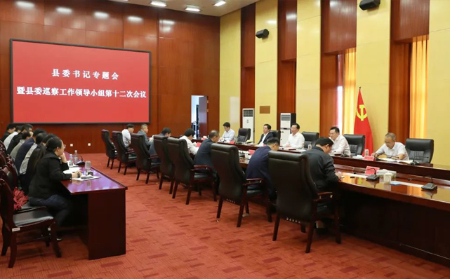 10月10日,县委书记专题会暨县委巡察工作领导小组第十二次会议召开,贯彻落实党的二十届三中全会关于健全巡视巡察工作体制机制的部署要求,听取县委第二、三轮巡察整改督查工作情况汇报和县委第八轮巡察工作方案汇报,就做好下一步工作进行安排部署。县委书记丁广州主持会议,县委副书记、县长索向东,县委副书记潘晓,县委常委、组织部部长陈颂,县委常委、县纪委书记、县监委主任李珩出席会议。