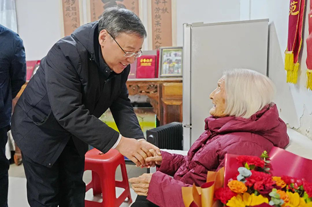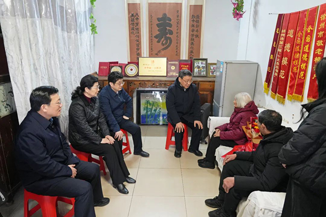 慰问组一行来到位于沛县大屯街道大屯村的张公兰家中,向张公兰老人及其家人送上了鲜花和新春祝福,并关切询问老人的身体健康状况和生活起居情况。慰问组表示,张公兰老人孝老爱亲的传统美德值得广泛学习和弘扬,有关部门和亲属要悉心照料好老人的生活,让老人安享天伦之乐,同时要传承好孝老爱亲的好家风,传递向上向善的社会正能量,示范带动更多人崇德向善、见贤思齐。